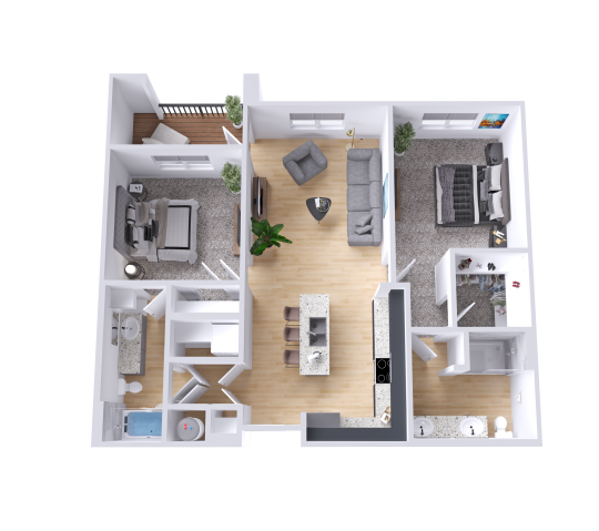 a 3d rendering of a two bedroom apartment at The Legacy at Veramendi